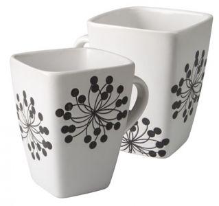 Cana ceramica, 400ml, cu design cu model negru. Dimensiuni: 90 x 150 mm.