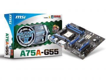 MSI Socket FM1, A75A-G55, A75,4xDDRIII, 2*PCI-Ex16, 3*PCI-Ex1, 2*PCI, GbLan, 8xUSB2.0, 4xUSB3.0, 6xSATAIII(6Gb/s),ATX