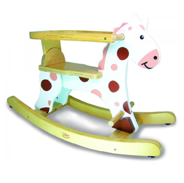Balansoar din lemn cu protectii laterale. Calutul este colorat pentru a atrage ..